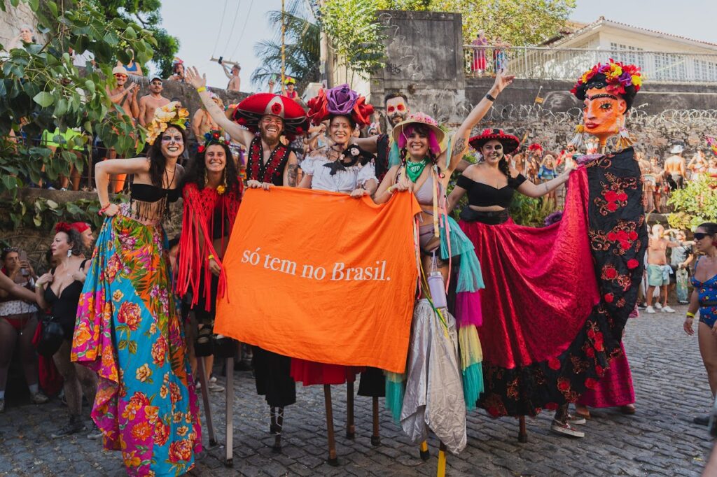Vocês também se baseiam nas latinidades, que trazem tanta riqueza e diversidade cultural. Como esse elemento aparece nas oficinas e no desfile, e o que significa para o bloco trazer essa mistura para o carnaval?
