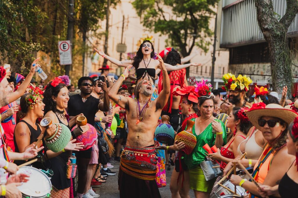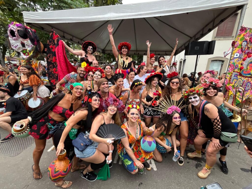 Para nós, trazer essas misturas é reafirmar nossa conexão com a diversidade cultural que compõe o carnaval e também celebrar as raízes latino-americanas — cores, símbolos, ritmos e espiritualidades que se encontram com a batucada e transformam o bloco em um espaço plural e vibrante.